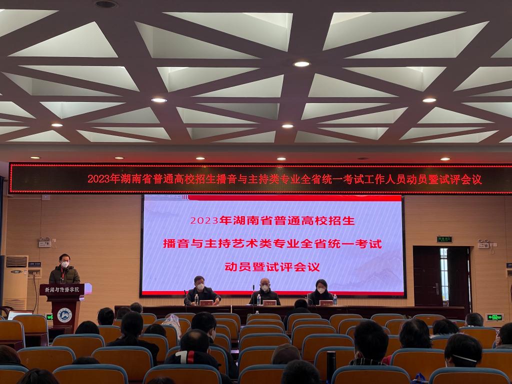 (通讯员 王倩)12月16日上午,2023年湖南省普通高校招生播音主持艺术类专业全省统一考试动员暨试评会议在我院书山论坛召开。湖南省教育考试院副院长周畅根,普招处副处长魏勇,英国官方365上市纪委书记姚春梅,365英国上市集团党委班子全体成员出席。2023年湖南省普通高校招生播音主持艺术类全体评委参加会议。会议由英国官方365上市副校长王辉主持。