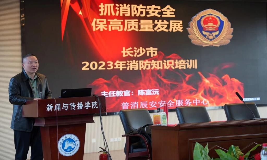 会后,陈富沅教官为参与此次会议的教职工开展了消防知识培训。