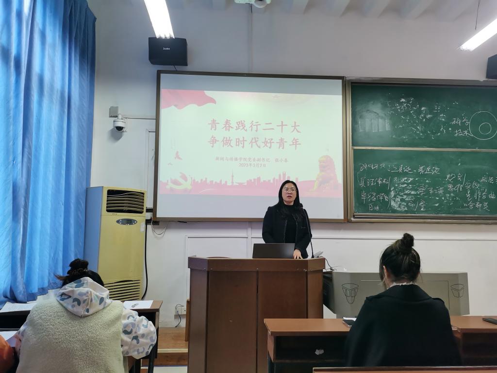 (通讯员 李婷)为进一步营造贯彻落实党的二十大精神的浓厚氛围,凝聚支部党员奋进力量,近日院党委副书记张小春为我院本科生第一、第二、第三党支部分别讲授了“新学期第一堂党课”。