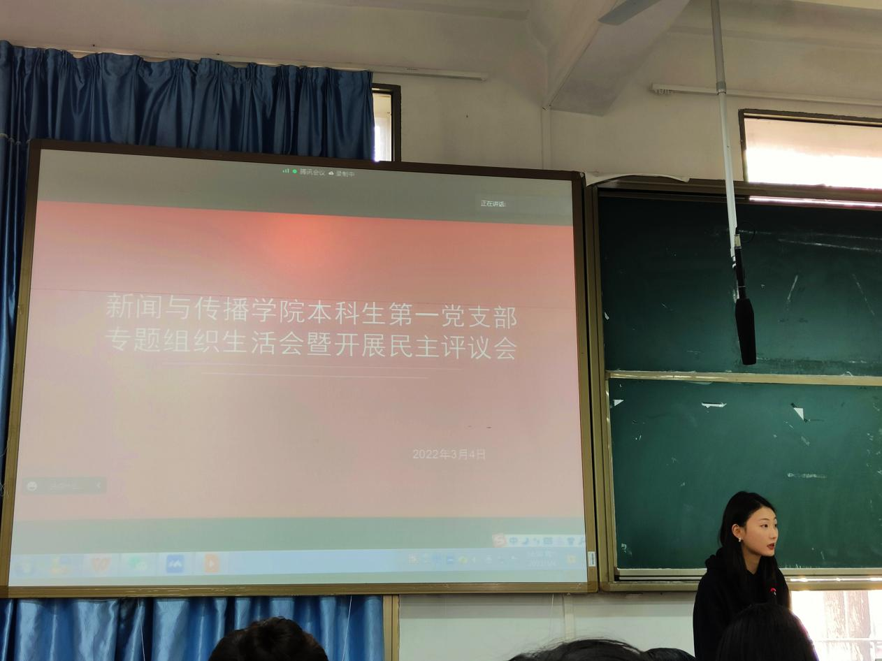 (通讯员 李婷)3月4日下午,本科生第一党支部在新传院南栋101教室召开专题组织生活会并开展民主评议党员。院党委副书记张小春到会指导并点评,支部书记王洋参加会议。