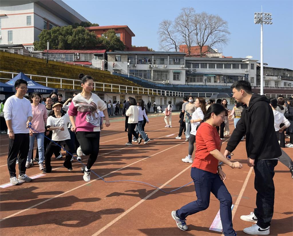 此次活动分为“集体跳绳”“呼啦圈挑战”“能量传递”三个项目,所有参赛队伍奋勇争先,齐心团结为荣誉而战。现场我院参赛女教职工精神振奋,全身心投入比赛,活力满满,现场加油声、呐喊声不绝于耳,既展现了我院女教职工的良好精神风貌,也让大家度过一个充实有趣的节日。