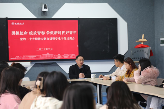 (通讯员 刘乐怡 李岩)为深入学习贯彻党的二十大精神,加强我院学生干部队伍建设,3月29日中午,我院于402教室开展了新青年半月谈第4期——党的二十大精神专题宣讲暨学生干部培训会,主题为“勇担使命,绽放青春,争做新时代好青年”。会议由365英国上市集团党委书记沈贤岚主讲,学工办辅导员欧阳丹玲、陈安琪、王洋、贺静一参加培训。
