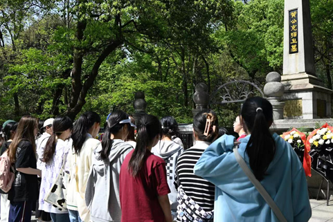 全体人员满怀对先辈的崇高敬意,沿着麓山,先后于忠烈祠、七十三军抗战阵亡将士墓、陈明仁将军之墓、黄兴墓、蔡锷墓凭吊先烈。我院师生缓步走向革命烈士之墓,向革命先烈进献鲜花,三鞠躬以表敬意。