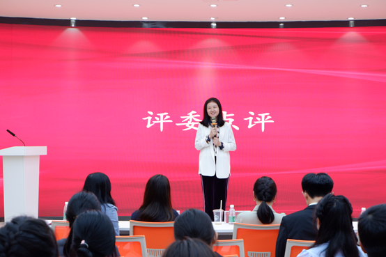 赛后评委老师进行点评。龚晔颖从文稿的内容上向选手们提出建议,她指出,演讲不仅仅是有声语言的艺术,更是文字语言的艺术。只有充分理解主题,把握主体,摒弃毫无逻辑的堆砌语言,对主题和选材进行充分的打磨,才能写出一份优秀的演讲稿。丛杨表示,演讲是一面镜子,除了要有听觉上的享受,视觉享受也需注重。他希望在需要话语沟通的正式场合里,选手们能够注重自己的语言和服装礼仪,做到身形俱佳。陈淼最后强调,演讲的故事一定要贴近自己,要具有典型性和时代新颖感,这样的故事才能说是好故事。