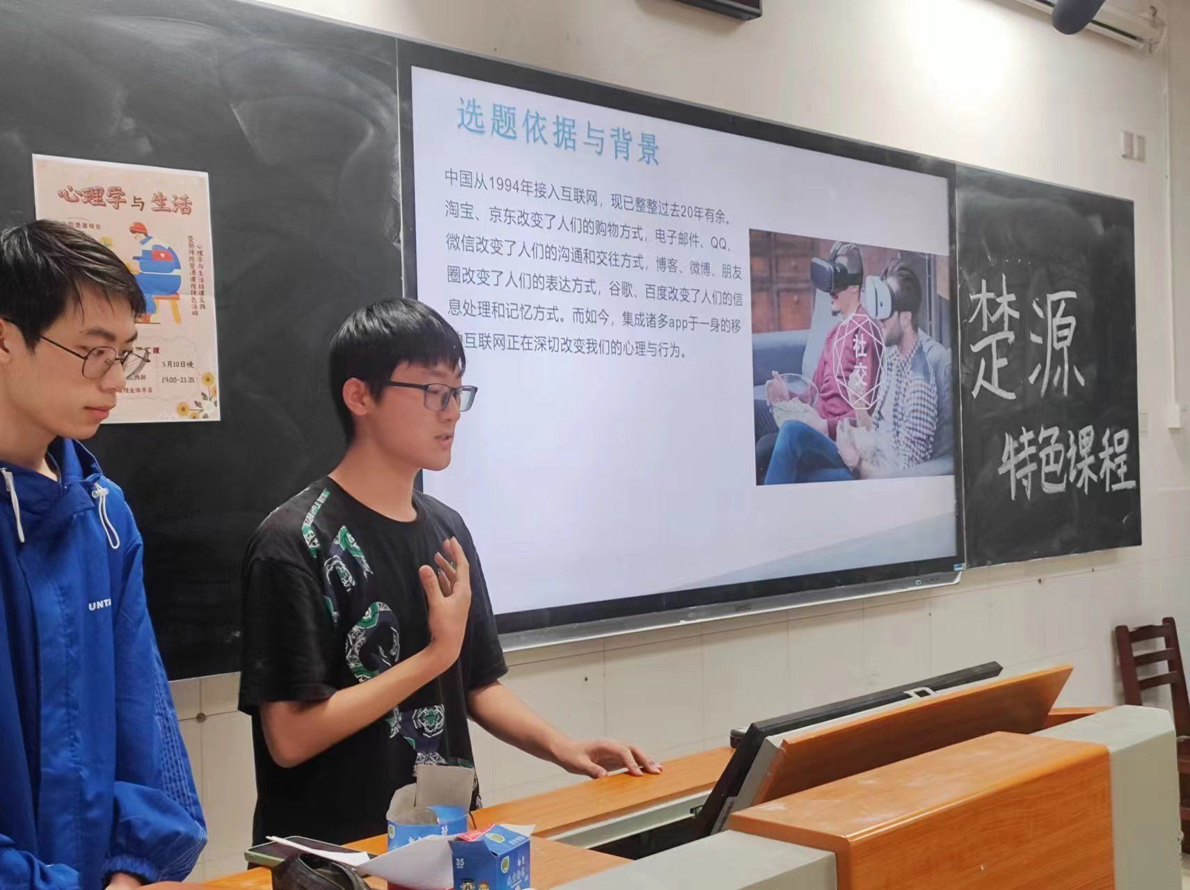 (通讯员 牛巧慧 王慧婷)为检验学生学习情况,展示学生自主学习成果,我院社会实践部楚源特色课程《心理学与生活》于5月10日晚19:00在至善楼214教室顺利开展小组学习成果汇报活动。课程主讲教师、我院团委书记陈安琪老师出席并主持本次活动,我院团委社会实践部协助开展。校团委青创中心主任梁欣然、校团委宣传部干事黄颐晨出席本次活动,并对本次活动进行监察与评价,课程全体学员参加。