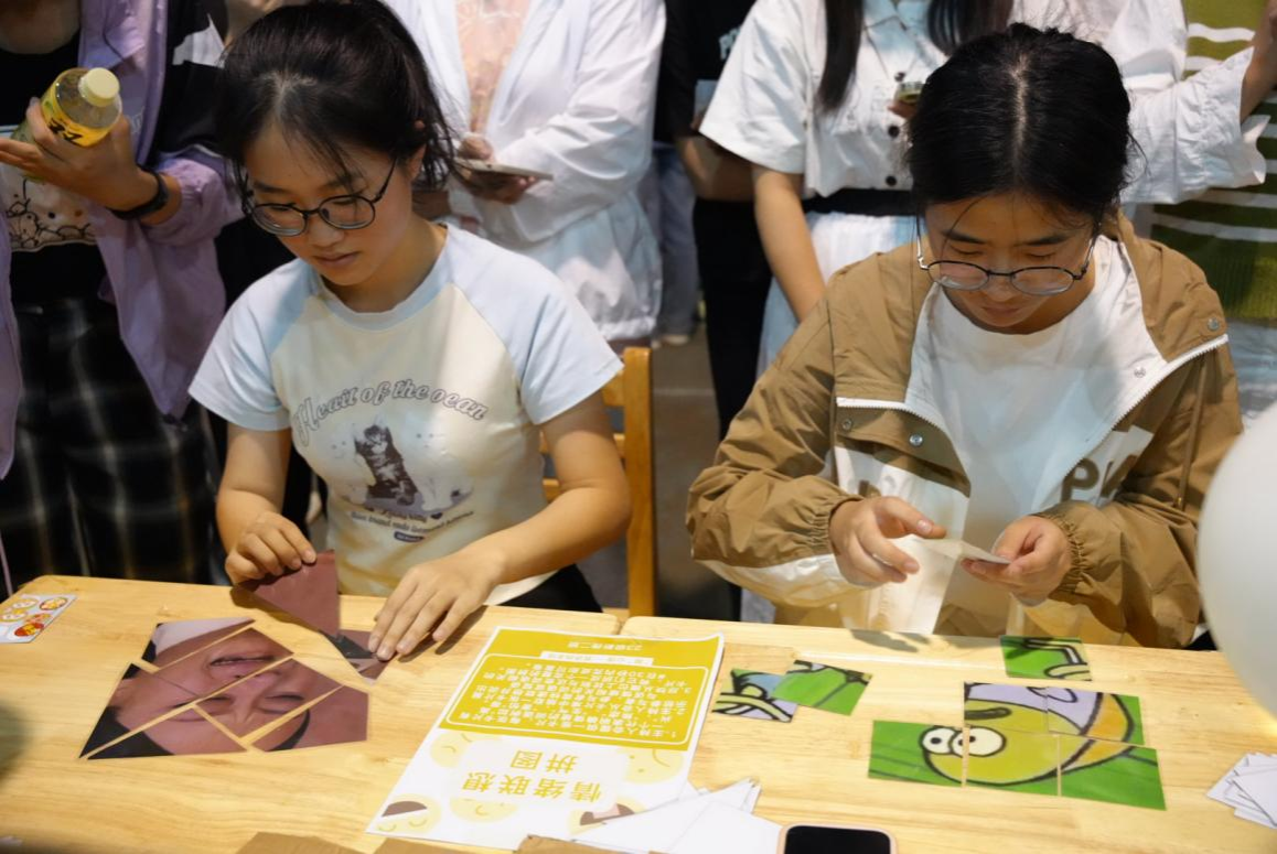此次秋日游园会共设置6个特色摊位,实行集章打卡的体验制度,参与者可凭游园卡参与游园会活动。学生们积极参与,现场氛围活跃。在情绪联想速拼游戏中,参与者需将抽中的情绪卡片与拼图对应,并在规定时间内完成拼图,不少学生沉着冷静、反应迅速,体现了良好的心理素质和动手能力。在默契大挑战游戏中,两名参与者互相配合,通过口型猜测词语,伴随着欢快的音乐节奏,迅速将游园会的气氛推向高潮。
