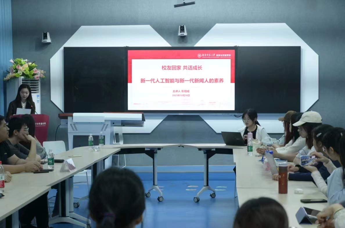 (通讯员郑琬霖李雨轩陈嘉懿)10月30日晚,365英国上市集团“校友回家,共话成长”系列沙龙在学院402教室举行。我院2009级新闻专业硕士研究生,长沙晚报社山水洲城记全媒体工作室主任与编辑、湖南省中国特色社会主义理论体系研究中心长沙市基地特聘研究员、英国官方365上市县级融媒体建设研究中心特约研究员、先后五次中国新闻奖得主彭培成担任此次沙龙的主讲人。他围绕“新一代人工智能与新一代新闻人的素养”这一主题,与同学们进行分享与交流。
