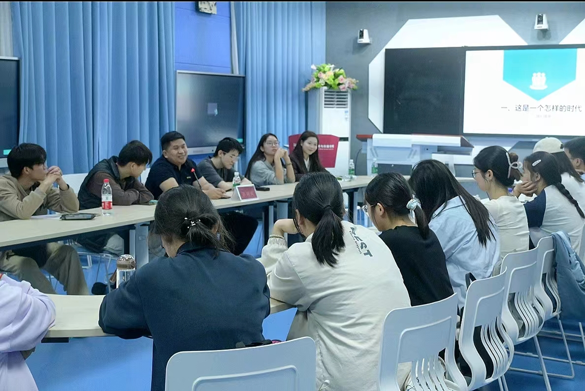 交流环节,彭培成与在场的同学们开展了讨论和互动,耐心地解答同学们心中的疑问和困惑。