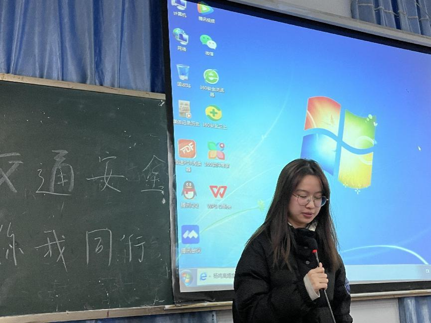 王洋针对班会内容做出总结,希望同学们能够不断增强交通安全意识,掌握一定的自救自护能力,将所学知识运用到实际生活中,为构建安全、和谐的校园交通环境贡献自己的力量。