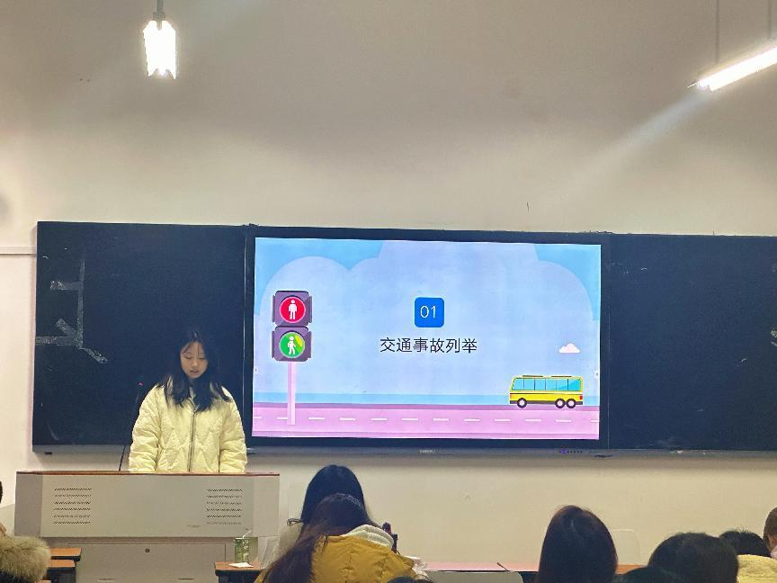 班长们从交通法规、交通信号灯的含义以及行人、非机动车和机动车的通行规则展开讲解,帮助同学们更加详细地了解道路交通的基本知识。同时,班长们还强调了遵守交通规则的重要性,提醒同学们要时刻保持警惕,遵守交通法规,确保自己和他人的安全。网络与新媒体班班长娄欣瑶通过生动的案例分析、互动式的分享方式,让同学们深刻认识到交通安全的重要性。同学们积极参与讨论,分享自己在日常生活中遇到的交通安全问题及解决方法,班会氛围活跃。
