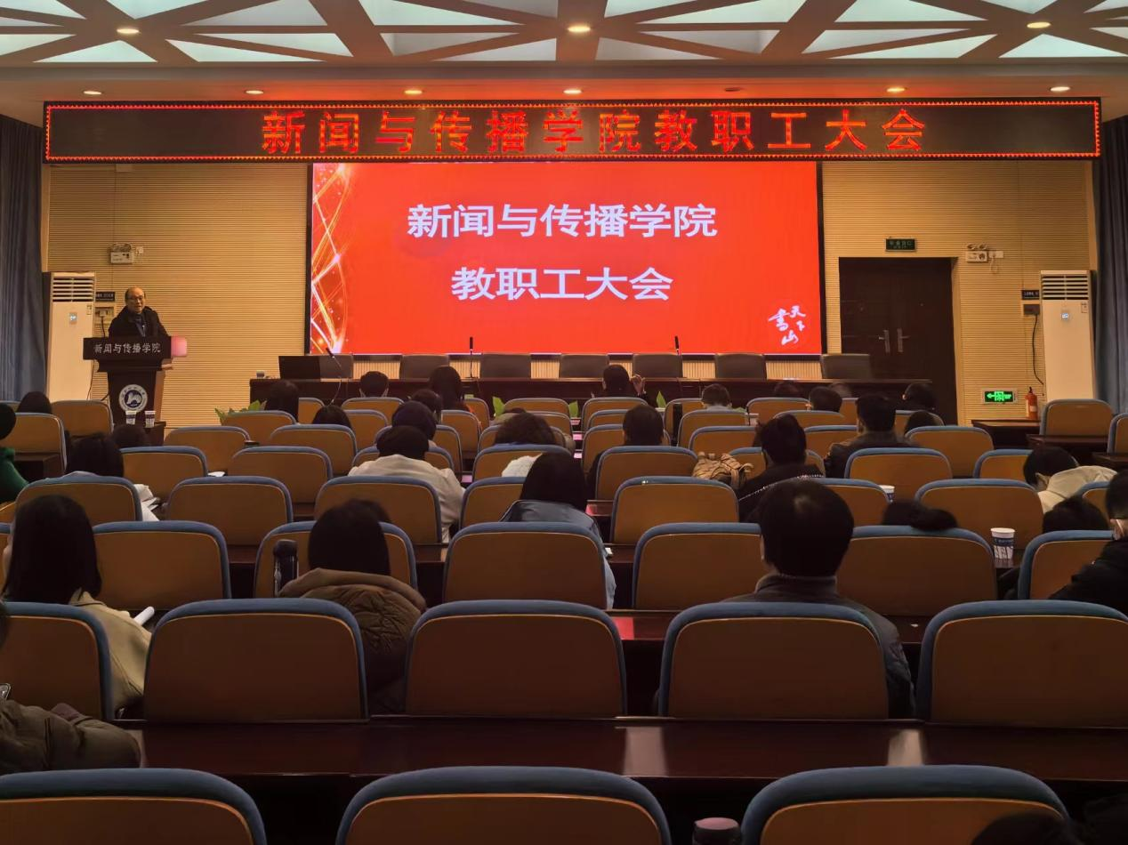 (通讯员何鑫 张馨怡)凛冬腊月,新春将至。1月18日下午,我院在书山论坛召开全体教职工大会。校党委委员、副校长唐贤清,校纪委副书记周勇及全体院领导出席会议,会议由院党委书记李泳波主持。