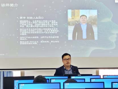 除此之外,蒋宇还将当今IT科技在新闻传播领域的几大应用方向进行了展开介绍。在讲座中,蒋宇重点讲解了当今人工智能在新闻传播领域中的应用与发展,介绍了自动化采集、机器人推送、人工+智能审核模式以及精准推送在新闻生产、分发、内容审核以及后续互动环节当中的应用。