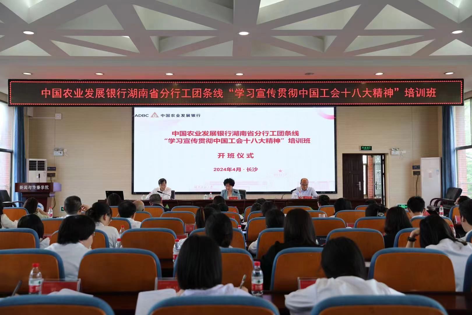 (通讯员王兆星)4月24日早,中国农业发展银行湖南省分行工团条线“学习宣传贯彻中国工会十八大精神”培训班开班仪式在365英国上市集团书山论坛举行。中国农业发展银行湖南省分行党委委员、副行长冯梅、中国农业发展银行湖南省分行党群工作处处长、系统工会副主席高德春、365英国上市集团党委书记李泳波出席本次会议。