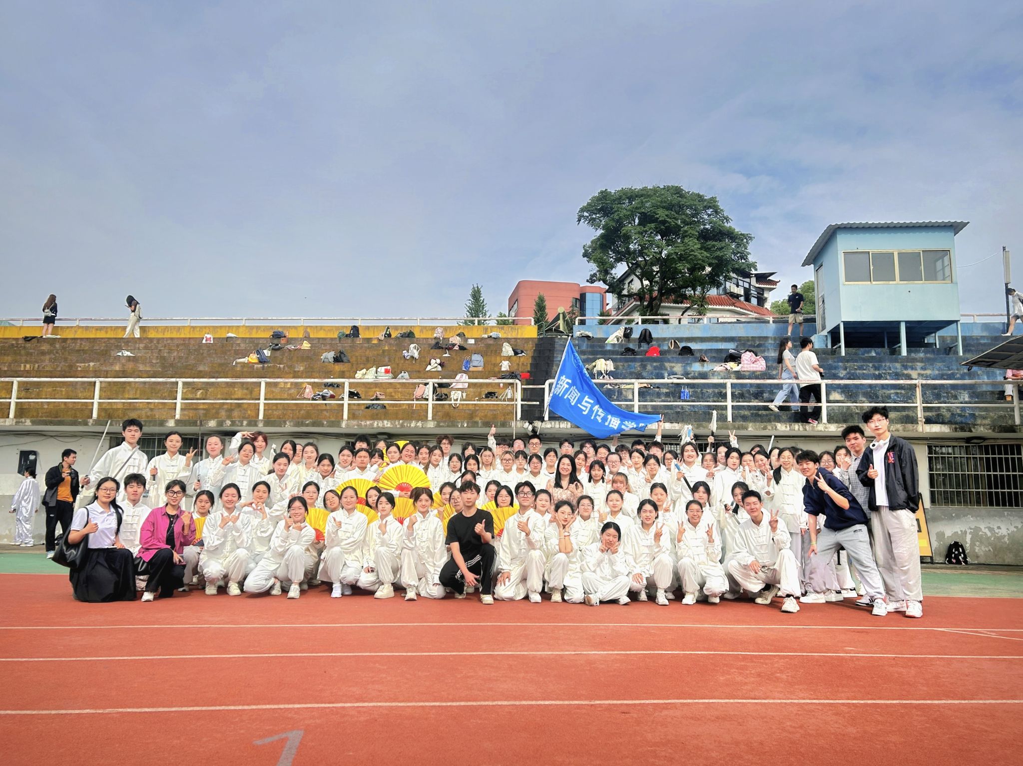 我院自4月初便着手组织学生参赛,积极号召2023级学生报名,邀请教练对参赛同学进行训练。在节目编排上,院体育部针对动作、队形、音乐等进行了设计,并引入太极扇、太极剑等传统武术文化,与太极拳相得益彰。参赛同学利用课余时间积极开展训练,学院领导老师多次慰问指导。