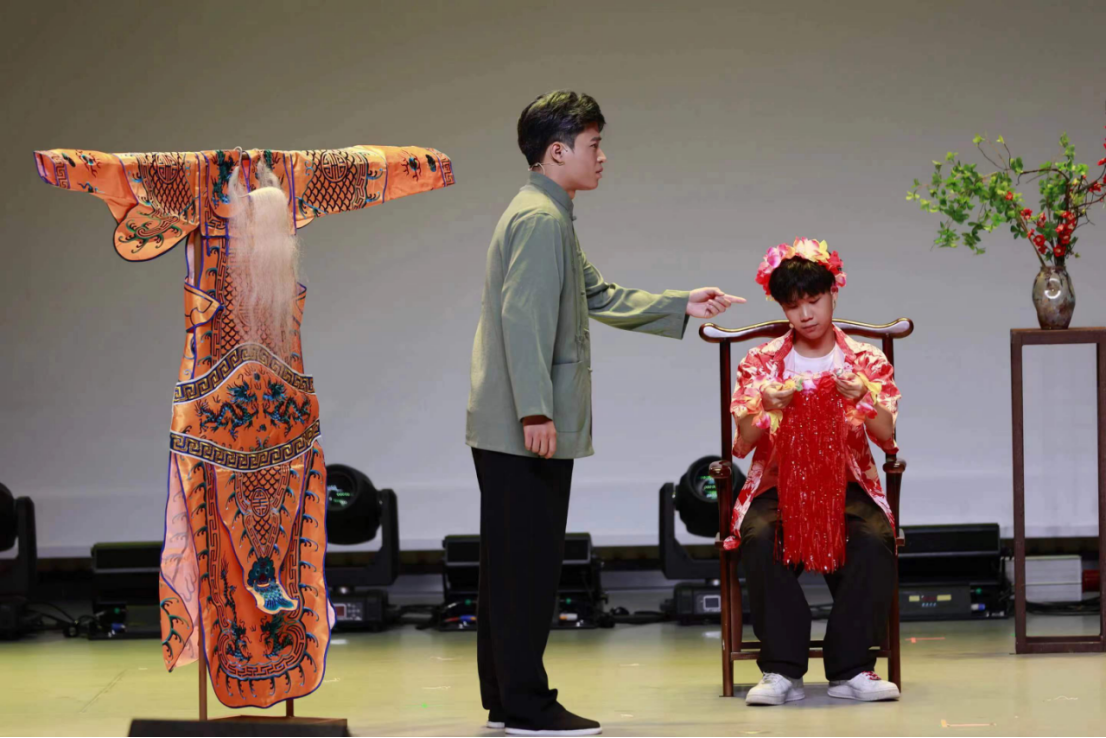 《新定军山》以父与子关于戏剧传承的矛盾冲突为主线,融合戏剧和戏曲两种表现形式,讲述了恪守初心的传统京剧演员父亲和想通过直播平台实现自我价值的儿子之间从冲突、和解再到携手一同传承经典戏剧的感人故事。该剧是一次对于传统戏剧与新媒体技术发展融合的重要探索,也是对于传统文化传承的创新性表达,更是对于讲好中国故事的实践创新。为呈现出最好的表演效果,该剧打磨一年整,排练上千回,是新媒体时代下推动中华民族传统文化创造性转化与创新性发展的戏剧实践,也是英国官方365上市师生共同创作的艺术佳作。