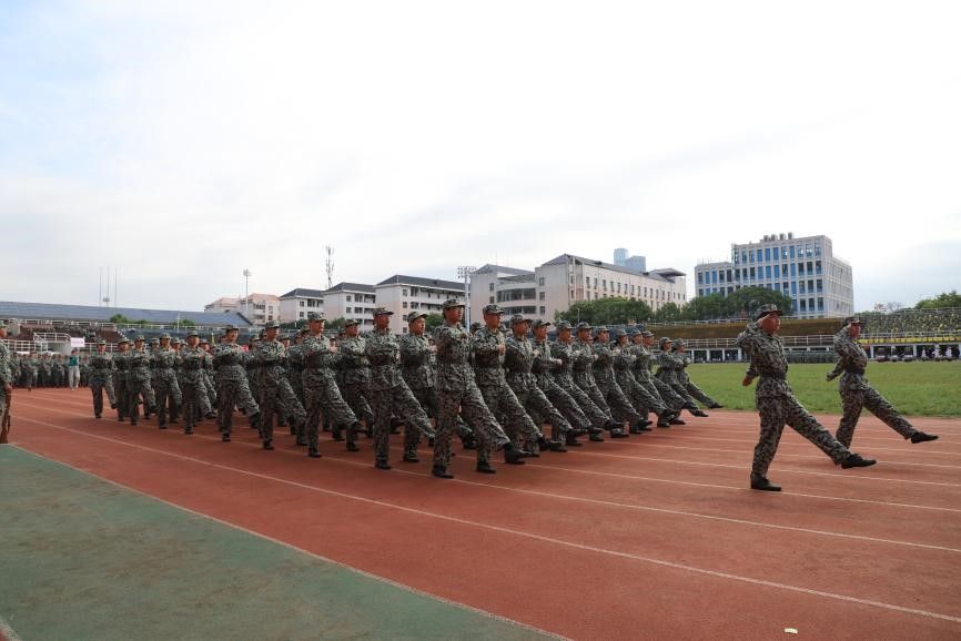 在军训成果展示中,新传院学子步履铿锵,神采奕奕,向全校领导、老师、同学们展现出多日刻苦训练的成果。第一方阵的同学们迈着整齐划一的步伐,昂首挺胸、目光坚定,赢得全校师生喝彩;特色方阵的同学们为大家带来了医疗急救操表演,融合心肺复苏要领、动感音乐与说唱,展现出新生的青春活力与积极向上。