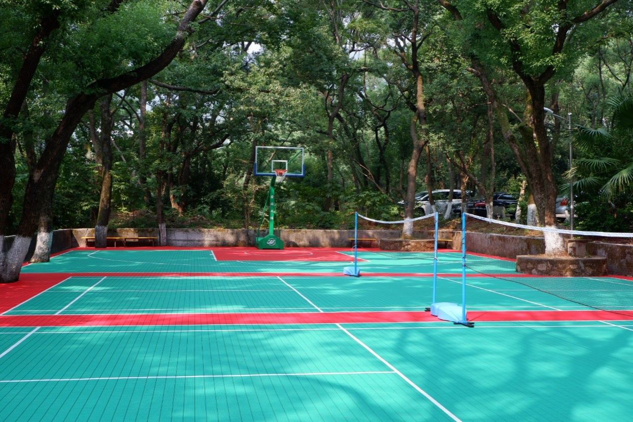 长期以来,学院前坪的户外空置场地是教职工、离退休人员以及学生进行体育锻炼、实践教学与课外活动的常用场所,但原有的水泥地面存在一定风险隐患。学院党委与院工会深入一线,进行全面的前期调研,综合分析场地情况以及改造的可行方案;经过多方询价、厂商现场介绍、专家反复论证等环节,确定改造方案与实施计划。在原有的水泥地面上铺设悬浮式运动地板,消除地面安全隐患;设置篮球架与移动羽毛球柱,提供便利的运动设施;并在场地周围加装长椅,方便休息。目前,新的活动场地已经投入使用并面向师生开放。