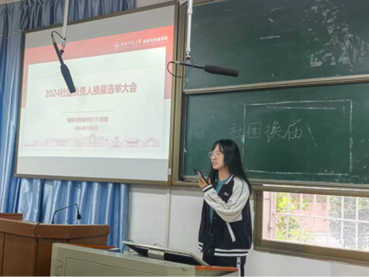 饶楚涵宣布新任社团负责人名单,并对本届换届选举大会作总结发言,感谢各前任理事长在上一学年为各社团发展所作的贡献,也对各位新任理事长表示欢迎与期待。