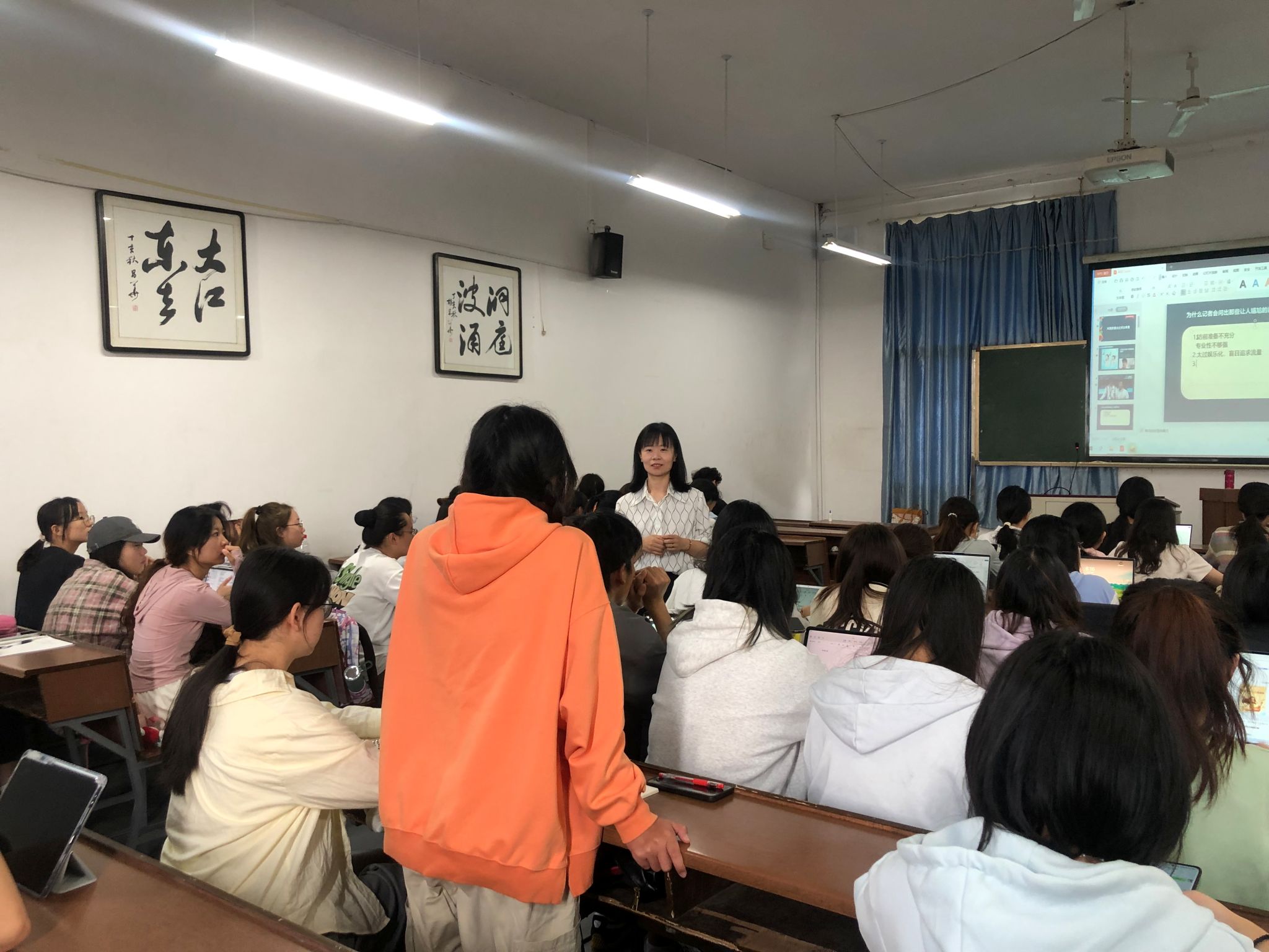 本次参赛的青年教师分别来自新闻、编辑与出版、广告、网络与新媒体、播音与主持艺术、广播电视编导等六个本科专业,分为文科组、新秀组两个小组进行比赛。比赛中,每位参赛教师在教学内容、教学组织、教学语言与教态、多媒体及板书、实践课程的生动趣味性等多方面进行了展示。参赛教师以饱满的精神状态,生动流畅的教学语言和丰富翔实的教学内容,展现了我院青年教师良好的教学素养、教学技巧和自身的学科特色。赛后,诸位评委从教学设计、教学技巧、课程思政等方面,对选手的课程演示进行了细致、中肯的点评。