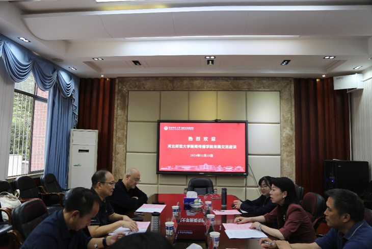 (通讯员 唐千惠)11月15日下午,河北师范大学新闻传播学院党委书记孔德强一行来我院交流座谈。副院长李琦教授、广告系单文盛副教授、部校共建办公室主任王倩老师、研办主任林芳老师出席会议。会议在学院二楼会议室举行。
