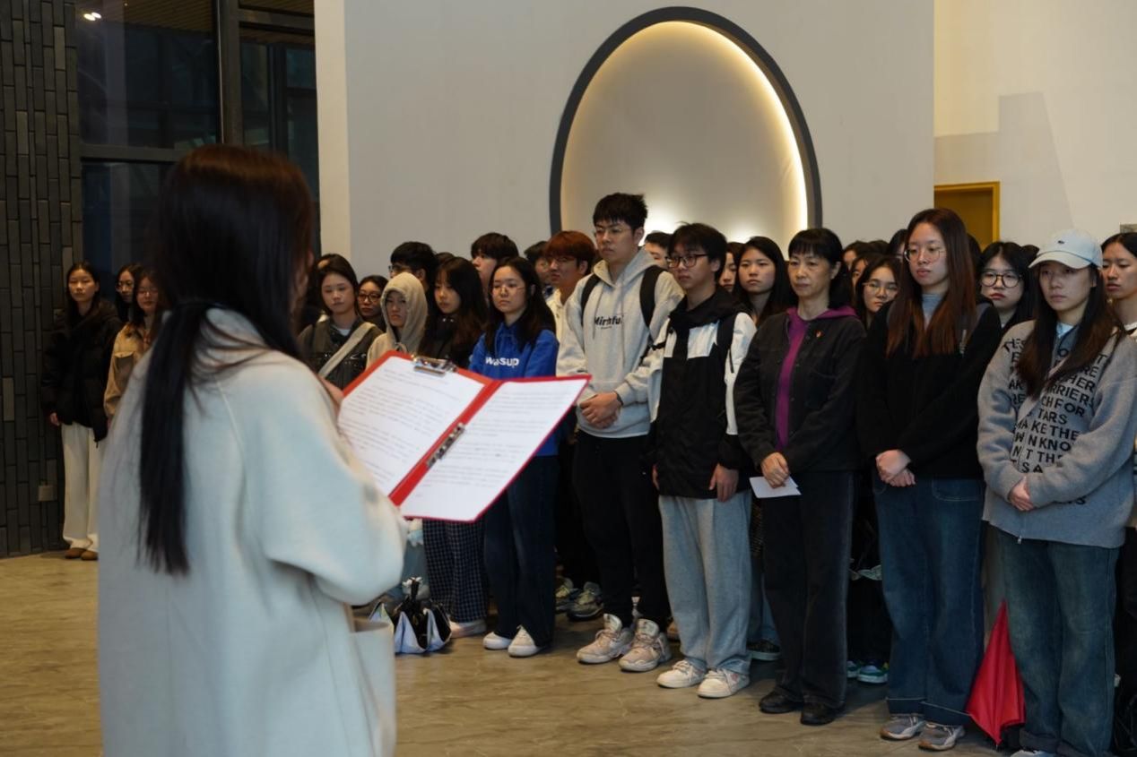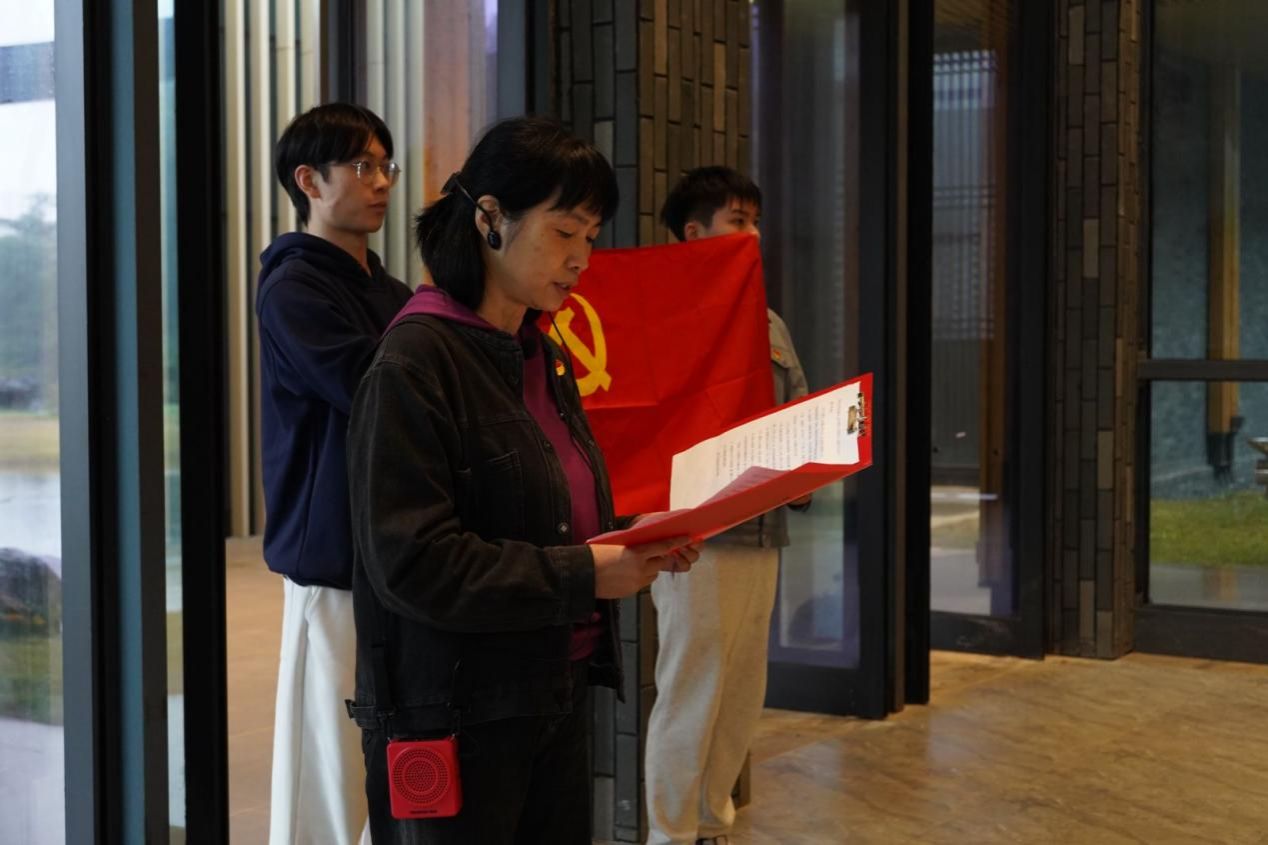 参观结束后,在中国当代作家签名版图书珍藏馆前,举行了预备党员入党宣誓仪式,宣誓仪式由王洋主持,欧阳丹玲领读誓词,全体党员庄严宣誓。预备党员代表2022级本科生李琳在发言中表示,不仅要在组织上入党,更要在思想上入党;要厚植家国情怀,以更昂扬的精神风貌投入日后的学习工作中,发挥先锋模范作用,为实现中华民族伟大复兴贡献青年的力量。