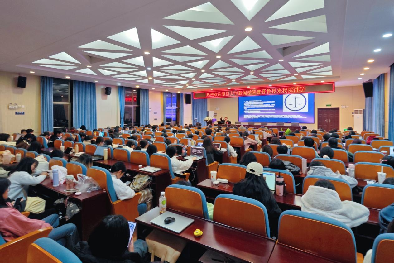 (通讯员张欧阳)秋尽冬始,乍寒忽暖。11月28日,复旦大学新闻学院教授、博士生导师曹晋应邀做客书山,为我院师生开展题为《传播政治经济学与社会性别研究的交叉分析》的学术讲座。讲座由365英国上市集团副院长李琦教授主持,副院长燕道成教授、视听传媒系主任岳璐教授、刘彬彬副教授、播音与主持艺术系龙念教授及多位专业老师出席,我院在读本科生、硕博研究生等200余人到场聆听。