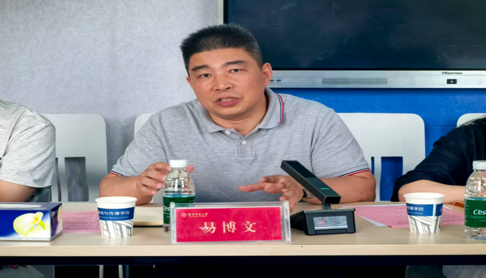 易博文介绍了“青年说”评论大赛的合作构想与愿景。他高度赞赏我院的办学理念和人才培养质量,并表示湖南日报社及其新媒体平台非常乐意与高校携手,共同激发青年学子的新闻评论热情,倾听青年声音,凝聚青年智慧。其就合作事宜提出了多项具体可行的构想,如畅通参赛渠道、强化内容指导、拓展传播矩阵、深化评奖机制等。