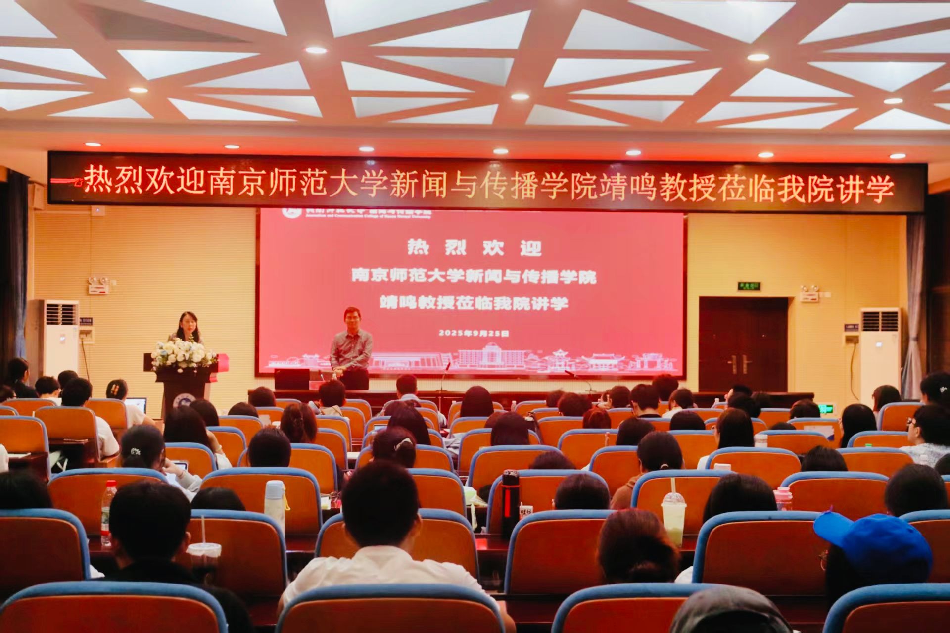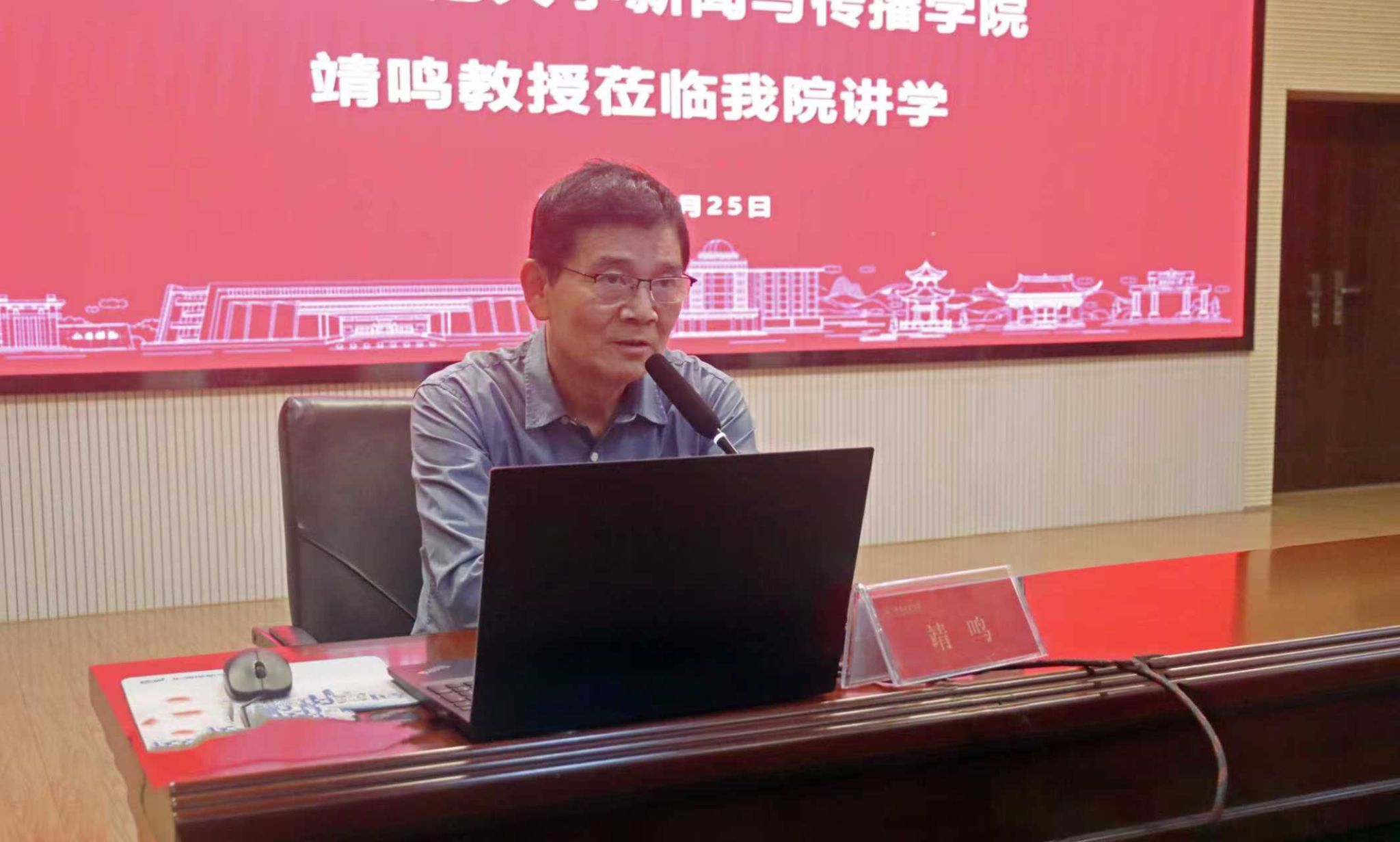李琦欢迎了来到现场的各位领导、老师和同学们,并介绍了靖鸣教授,随后以其著作成就为引宣布此次讲座正式开始。