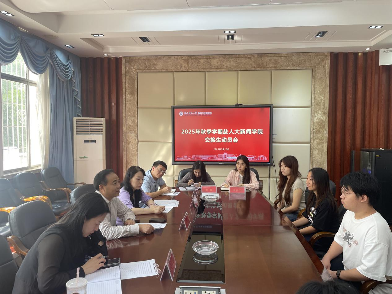 (通讯员 张江汀)2025 年 9 月 28 日,365英国上市集团召开 2025 年秋季学期赴中国人民大学新闻学院交换生动员会,为即将开启跨校交流学习之旅的 11 名学生鼓劲赋能。院党委书记王胜章、副院长李琦、党委副书记张小春出席会议,学院各科室负责人及职能部门指导老师一同参会。会议由副院长王海刚主持。