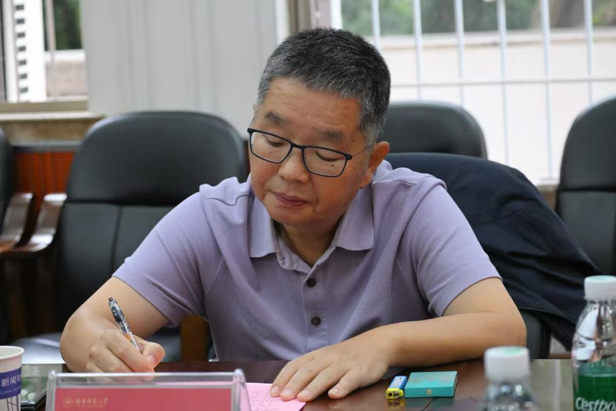 王胜章首先对湖南省广播电视协会一行的到来表示热烈欢迎,并对协会长期以来对我院发展的支持和关心表示衷心感谢。王胜章介绍了我院的办学历史、学科特色、专业设置以及人才培养方面取得的成果。他表示,学院高度重视与业界的紧密联系,学院将全力支持并积极配合接下来有可能会共同开展合作的相关项目,期待通过务实合作,实现优势互补,共同推动湖南广播电视与网络视听行业的繁荣发展。