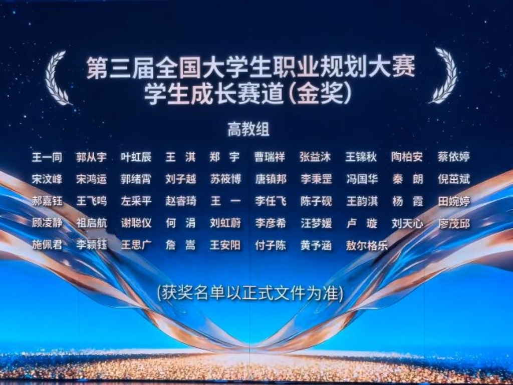 (通讯员 张江汀 廖茂邱)4月23日至25日,第三届全国大学生职业规划大赛总决赛在天津举行,由张小春、张江汀、陈松指导的2023级新闻学专业本科生廖茂邱荣获成长赛道高教组金奖。