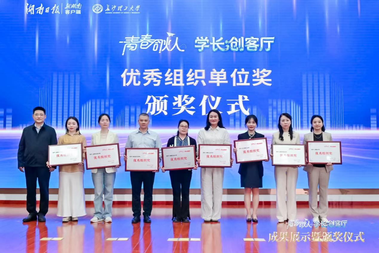 (通讯员 刘伊涵)4月25日下午,由湖南日报社发起、联动全省26所高校的“青春合伙人·学长创客厅”UGC主题征集活动成果展示暨颁奖仪式在长沙理工大学云塘校区图书馆报告厅举行。我院师生在此次活动中表现优异,斩获多个奖项。2023级网络与新媒体专业刘晴同学小组斩获一等奖第一名,翟娱颉同学小组获二等奖,新闻学专业范思恬同学小组同时摘得三等奖与最佳人气奖。我院实现了全奖项覆盖,获奖比例位居所有参赛学校之首,也因此获评优秀组织单位奖,唐苗老师获优秀指导教师奖。