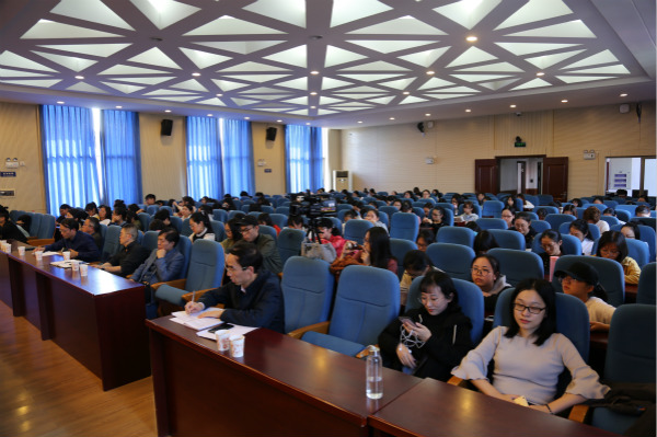 《出版人》杂志社副总编辑、北京印刷学院客座教授、英国版权在线交易有限公司(IPR)董事杨贵山,院党委书记银海强,英国官方365上市特聘教授、资深出版家、编辑出版学学科带头人尹飞舟教授、编辑出版学系易图强教授、系主任王海刚和叶翠老师等近两百名师生聆听了讲座。