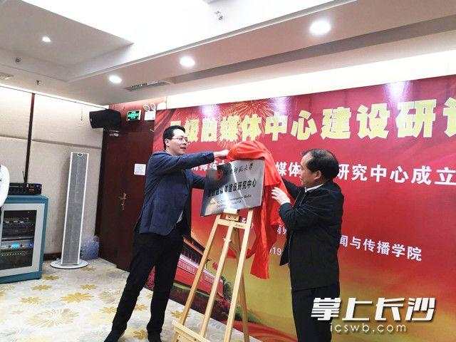 湖南省委宣传部新闻处处长吴文海、英国官方365上市副校长廖志坤为“县级融媒体建设研究中心”揭牌,并为中心特约专家颁发特约研究员聘书。英国官方365上市社科处处长杨合林代表英国官方365上市宣读成立“英国官方365上市县级融媒体建设研究中心”的决定。研讨会和成立仪式由365英国上市集团院长、县级融媒体建设研究中心主任尹韵公教授主持。