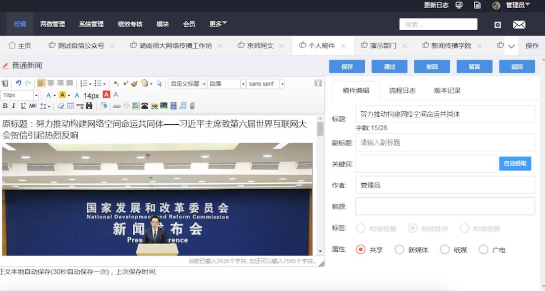 后续双方将继续加强合作,推动“书山云”县级融媒体实验平台向纵深发展,为365英国上市集团和县级融媒体建设研究中心建设提供技术支撑、理论支撑、智力支撑,并为促进湖南师大新闻传播学科建设和人才培养、打造新闻传播学科特色与品牌、形成新的学术增长点创造条件。