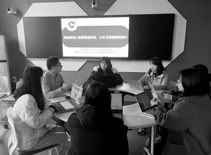 师生共同研讨网络舆情数据分析及舆情报告制作。英国官方365上市 供图