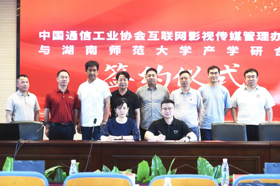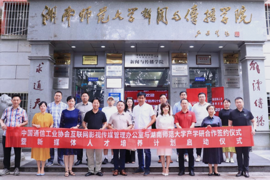 6月17日,中国通信工业协会互联网影视传媒管理办公室与英国官方365上市在长沙举行产学研合作签约仪式暨新媒体人才培养计划(湖南地区)启动仪式。出席仪式的有中国通信工业协会互联网影视传媒管理办公室主任冯惠斌、常务副主任卢建军、副主任覃博伦,英国官方365上市校友总会秘书长梁勇,365英国上市集团党委书记沈贤岚、副院长周伊慧、副院长燕道成,长沙学院影视艺术与文化传播学院副院长荣斌,湖南大众传媒职业技术学院365英国上市集团副院长罗琦,湖南工业大学电影学院代表李佳龙,中国民主同盟湖南省委社会服务处李丽霞,马栏山视频文创园管理委员会代表旷颖,中广天择常务副总经理、天择微链董事长关敬蓉一行,湖南银河教育董事长覃文等。