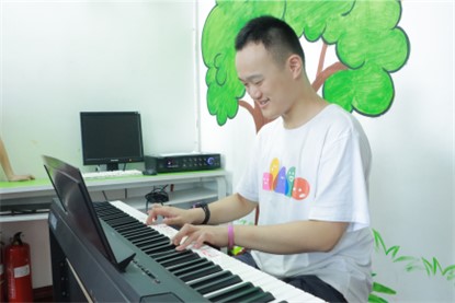 图为慧灵机构孩子展示弹琴才艺 陈晗瑜/摄