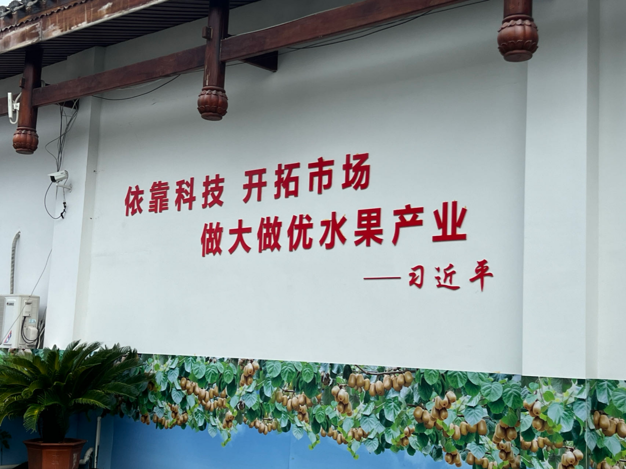 沿着总书记的路线,实践团成员实地参观了菖蒲塘村猕猴桃产业基地和文旅产业展示中心,并以此为基础,拍摄并剪辑了“果味”“情味”“湘味”三个主题视频,投放到不同社交媒体平台;同时,采访“全国脱贫攻坚先进个人”王安全老书记、“土专家”丁清清、菖蒲塘村传统电商负责人向黎黎等具有代表性人物并撰写人物访谈稿。