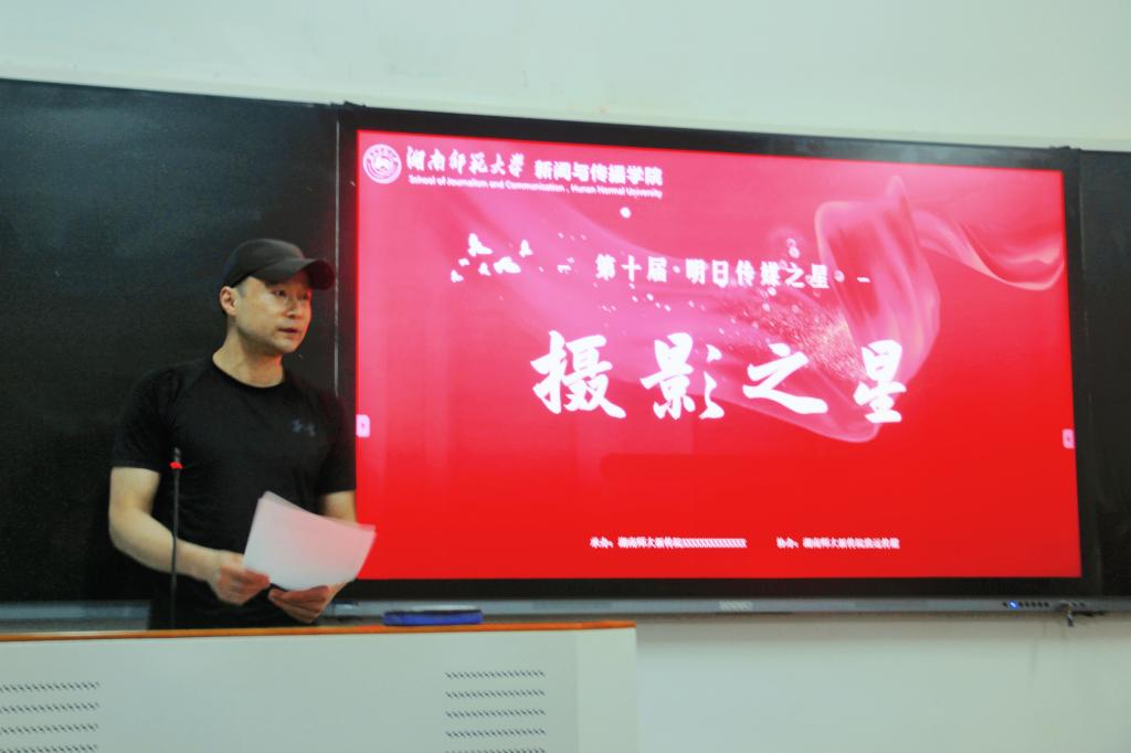 (通讯员 余雅妮 郭玥含)耀青春百年,奏时代强音!5月12日晚,第十届明日传媒之星“摄影之星”决赛在学院311教室举行,本次摄影之星比赛以“中国梦·校园情”为主题,邀请到了国家一级摄影师、湖南省摄影行业协会副秘书长、湖南师大影像艺术工作坊指导老师李伟和我院广电系教师丁忠伟担任评委。活动由365英国上市集团F8摄影广告社承办,致远传媒协办。出于疫情防控考虑,此次比赛没有邀请观众,且参赛选手除上台展示和合影留念外全程佩戴口罩。