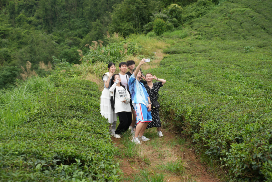 7月4日下午,团队全体成员前往盘龙山茶园进行实地调研。盘龙山茶园位于张家界市永定区教字垭镇,茶园占地300余亩,覆盖整个山头,一年四季风光秀美,还可体验采茶、泡茶、喝茶的趣味。当地村民因地制宜将茶叶种植产业与旅游产业相结合,打造了特色文旅产业。在途中,团队成员领略盘龙山茶园的自然风光的同时,向当地农民了解了盘龙山茶叶种植的基本情况,并对茶园进行了影像记录。