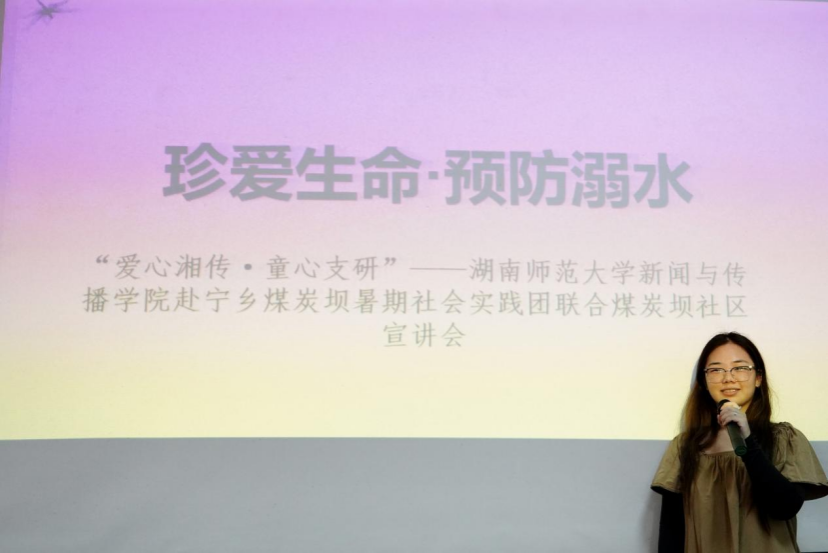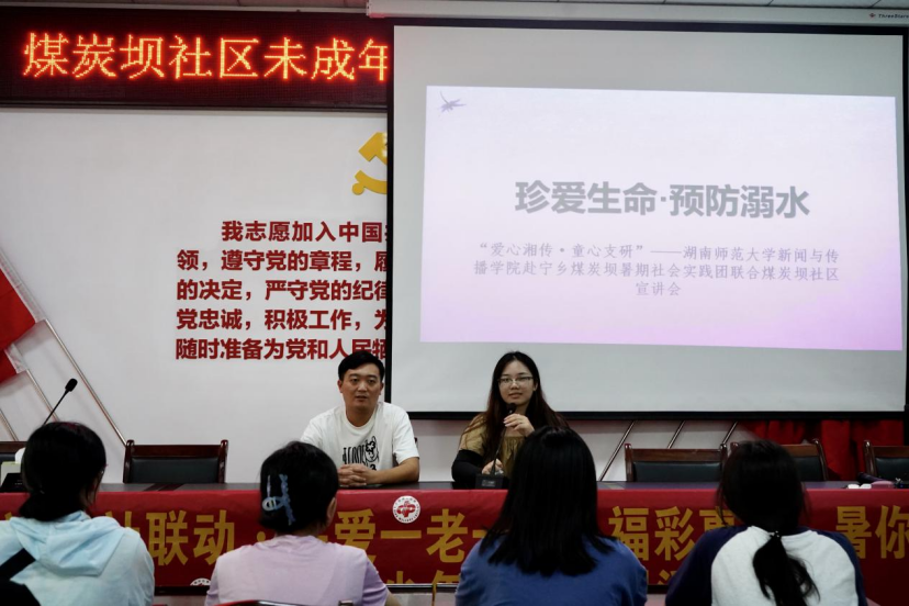 (通讯员 刘乐怡 蔡田甜)7月7日下午,”爱心湘传·童心支研”暑期社会实践团联合煤炭坝社区在社区公共服务中心开展了防溺水安全教育宣传活动。实践团队长李雨担任宣传活动主讲人,煤炭坝社区总支委员谢柯运出席了本次活动。