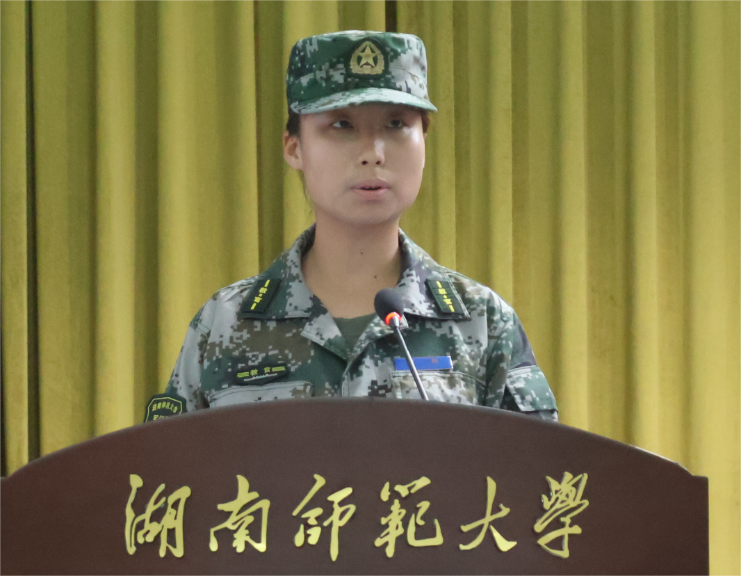 教官代表周畅代表全体教官表示,他们将充分发挥教官的表率作用,做到言传身教;同时将秉承循序渐进的原则,刻苦训练、科学组训,带领同学们磨练钢铁般的意志,铸造健强的身躯,顺利圆满地完成军训任务。