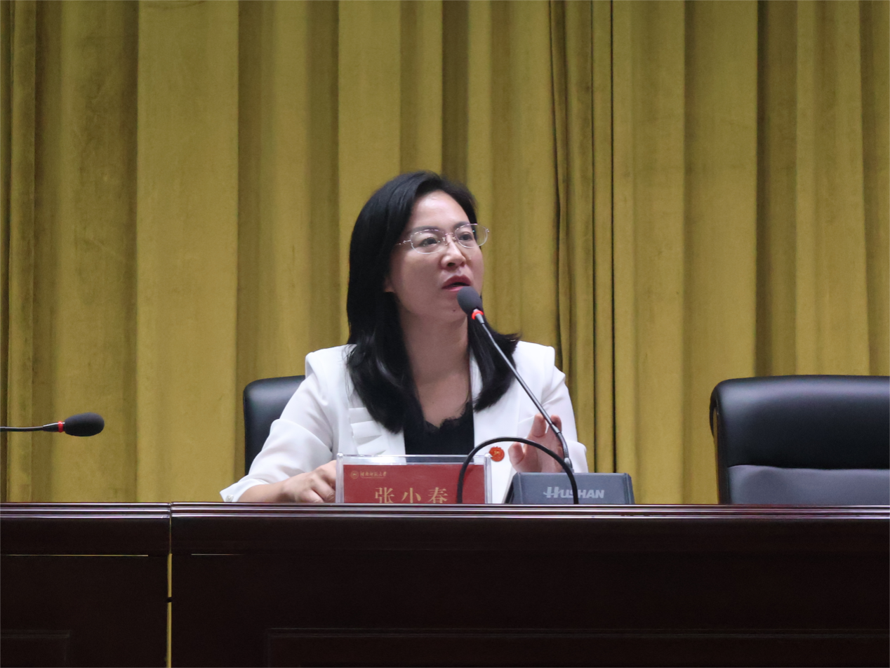 张小春发言,她向同学提出了四点建议:一是一定要在大学读好书,无论是担任学生干部,还是想要保研都要求同学们有良好的学习成绩;二是可以通过担任学生干部来锻炼自己的能力;三是学会自强,能够独立地解决问题;四是要有参与的意识,积极主动的参与竞争。最后她祝愿同学们可以度过美好的大学四年。