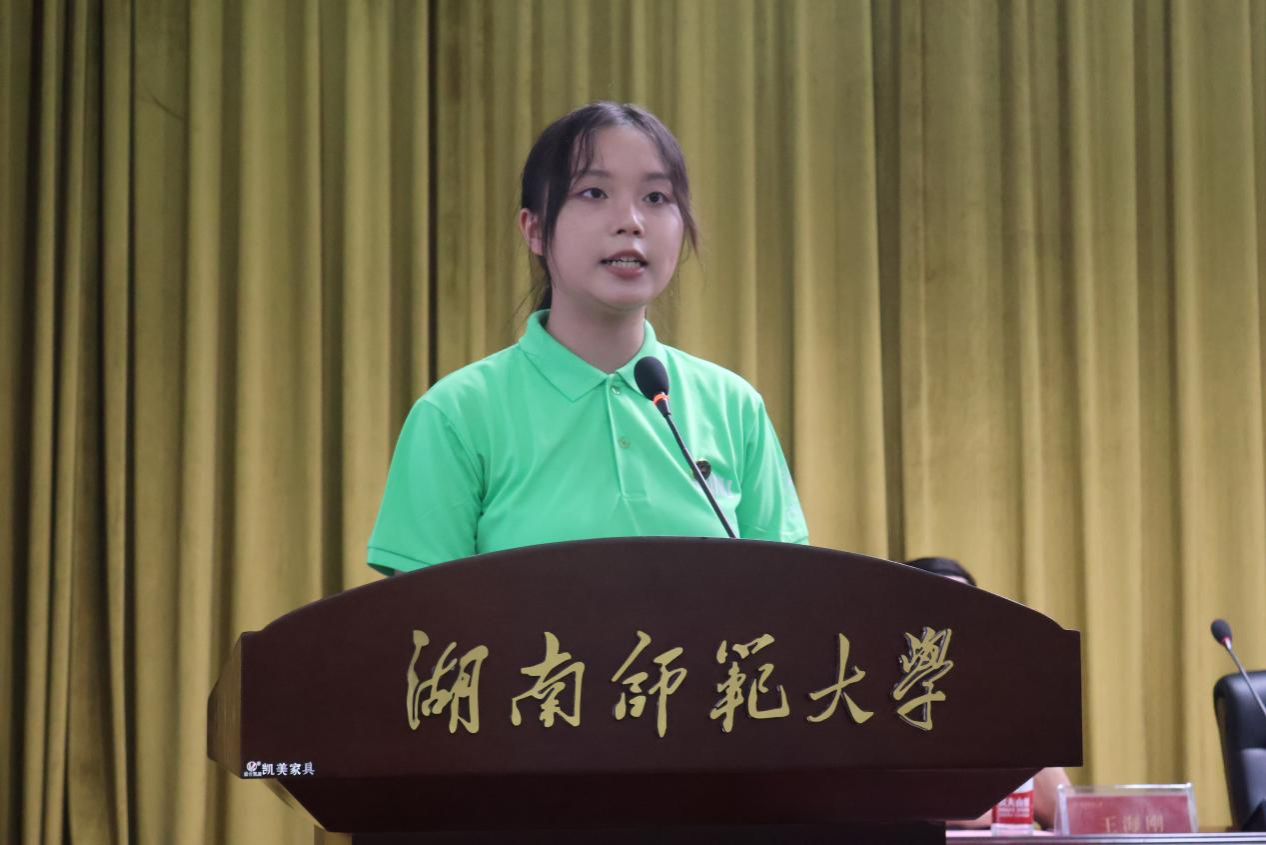 老生代表陈可心向新同学们讲述自己对大学的感悟。她建议同学们在大学期间充分挖掘自己各方面的可能性,把握学校提供的每一次机会;端正学习态度,勇于追逐自我,建立对收获知识和认真生活的热情。新生代表邬雨嫣分享了自己对新闻传播的认识与热爱,并呼吁同学们要坚定理想,不忘初心,脚踏实地。