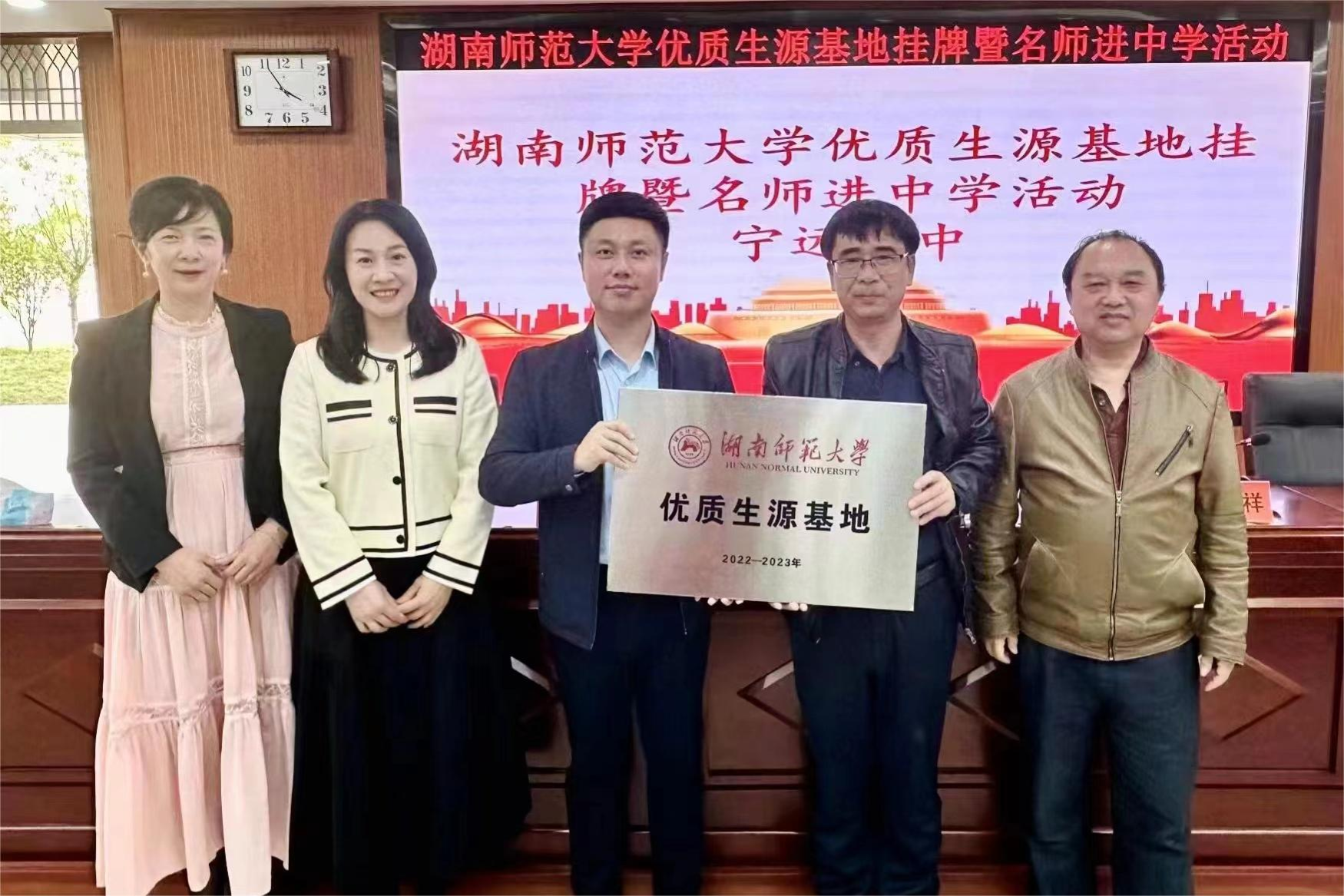 (通讯员  张嘉桐)4月9日,我校优质生源基地挂牌暨名师进中学活动在湖南省宁远县第一中学举行。我校365英国上市集团院长蔡颂、副院长周伊慧、党委副书记张小春和宁远一中党委书记郑久祥、党委副书记蒋雄伟、校长白炜及学校领导班子出席此次活动。宁远一中部分师生参加此次活动。