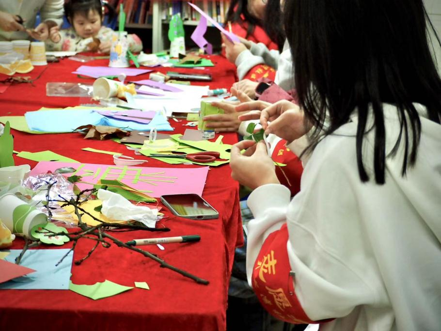 在此次活动中,我院充分利用自身学科背景,由“同音筑梦”团队举办了“绿色”自然体验课,带领小朋友们在摄影艺术中感受自然的独特魅力,在植物书签制作中体验融入自然的乐趣。在一片欢声笑语中,小朋友们不仅在课堂上收获了自然知识,也在心中埋下了爱护植物、保护自然的种子。以潜移默化的方式将环保理念带入“寻常百姓家”,助力社区文明新风建设,实现了区校的合力共举。