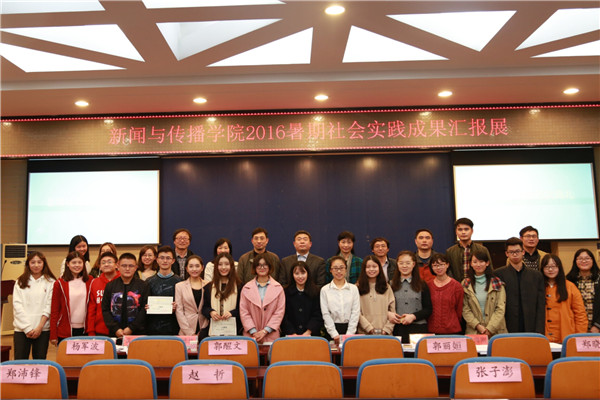 (通讯员 冯耀丹) 11月1日晚,我院2016年度暑期社会实践成果汇报展在学院书山论坛举行。院党委书记银海强,副院长肖燕雄,党委副书记王云,新闻学系主任吴果中、编辑出版学系主任王海刚,广电系教师丁忠伟、广告系教师刘振、新媒体系教师袁会出席活动并担任评委。