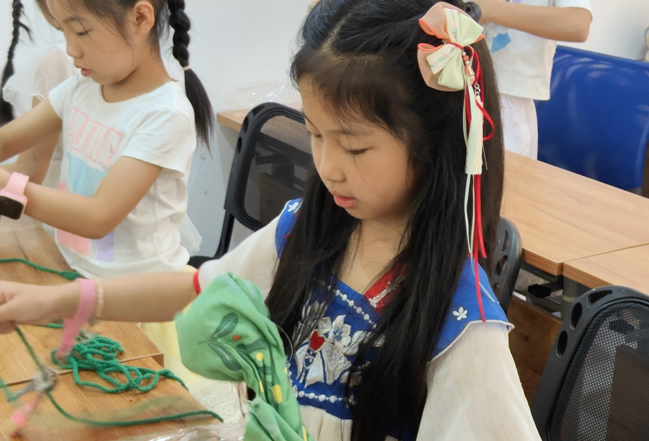活动过程中,志愿者为孩子们讲解了中医药的发展历史和治疗理念,使他们能够更全面地了解中医药的文化底蕴。为在实践中切身体会中医药、感受中医药,在志愿者的引导下,孩子们纷纷拿起艾草包、麻绳等材料制作艾草按摩锤这一传统养生工具。经过手工制作,孩子们更深入地了解炮制技艺、配伍原则以及药材的采集和鉴别方法,从而加深了对中医药文化的认识和尊重。