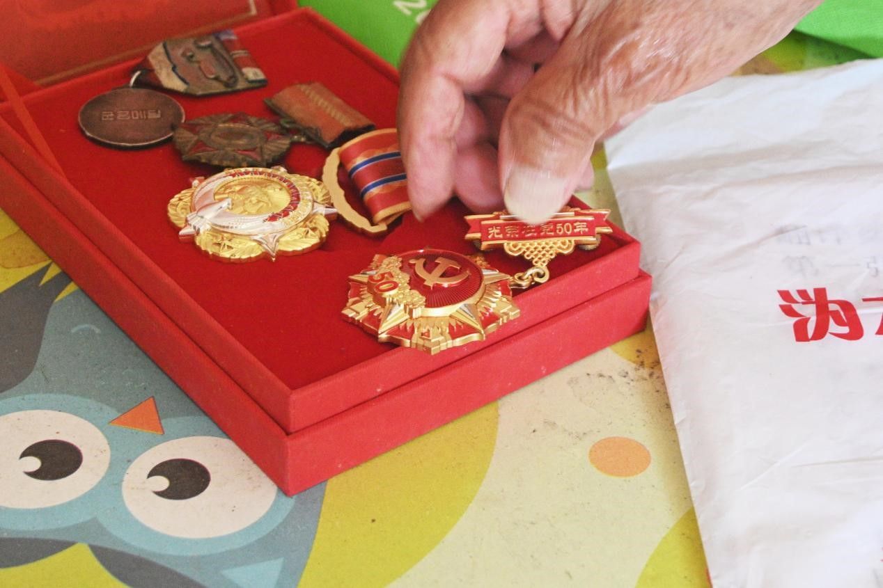 尽管已是鲐背之年,张迪泉老人依旧精神瞿烁,向实践团成员展示珍藏的勋章和证书,讲述背后的战斗故事。他带领实践团成员重温那段峥嵘岁月,感悟中国人民志愿军在艰难困苦的作战环境中英勇无畏冲锋向前的精神,并以此激励广大青年铭记历史,珍惜今天来之不易的幸福生活,要坚持中国共产党的领导和全心全意为人民服务的根本宗旨,在新时代继续传承和弘扬抗美援朝革命精神。
